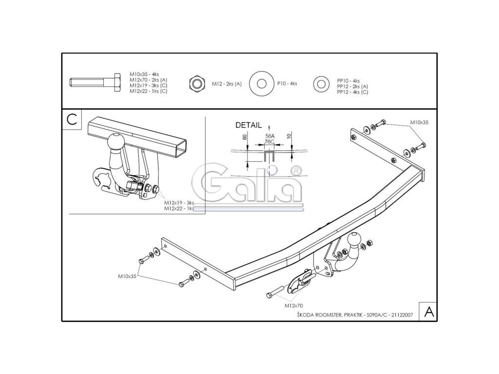 Tažné zařízení Škoda Roomster 2006-2010 , pevný čep 2 šrouby, Galia