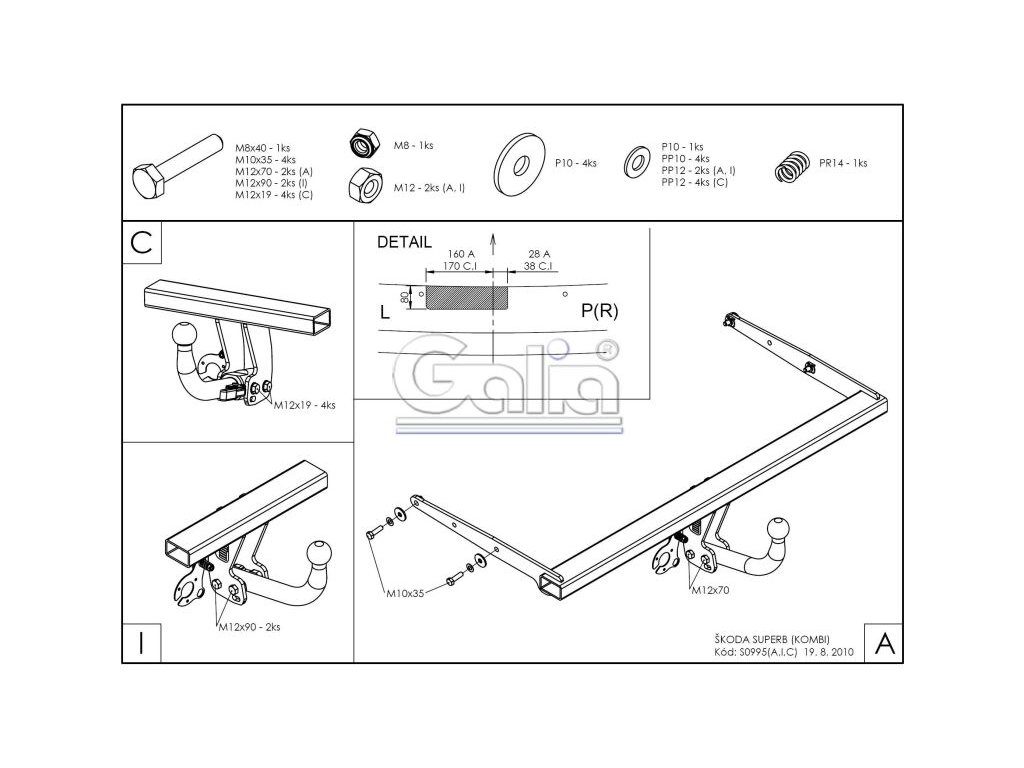 Tažné zařízení Škoda Superb 2008-2015 , odnímatelný bajonet, GaliaUpozornění - k primárnímu používání s nosiči kol doporučujeme volit pevné tažné zařízení. V důsledku dynamického působení svislého zatížení dochází ke snižování životnosti bajonetových systémů.