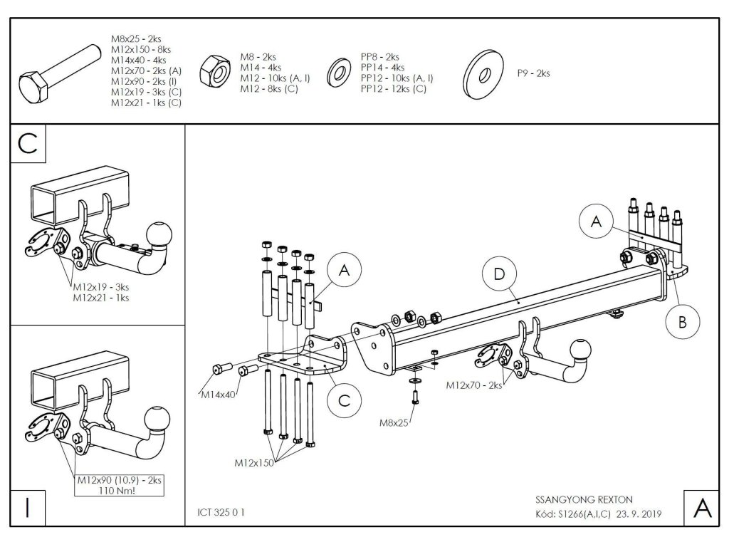 Tažné zařízení SsangYong Rexton 17-, pevné