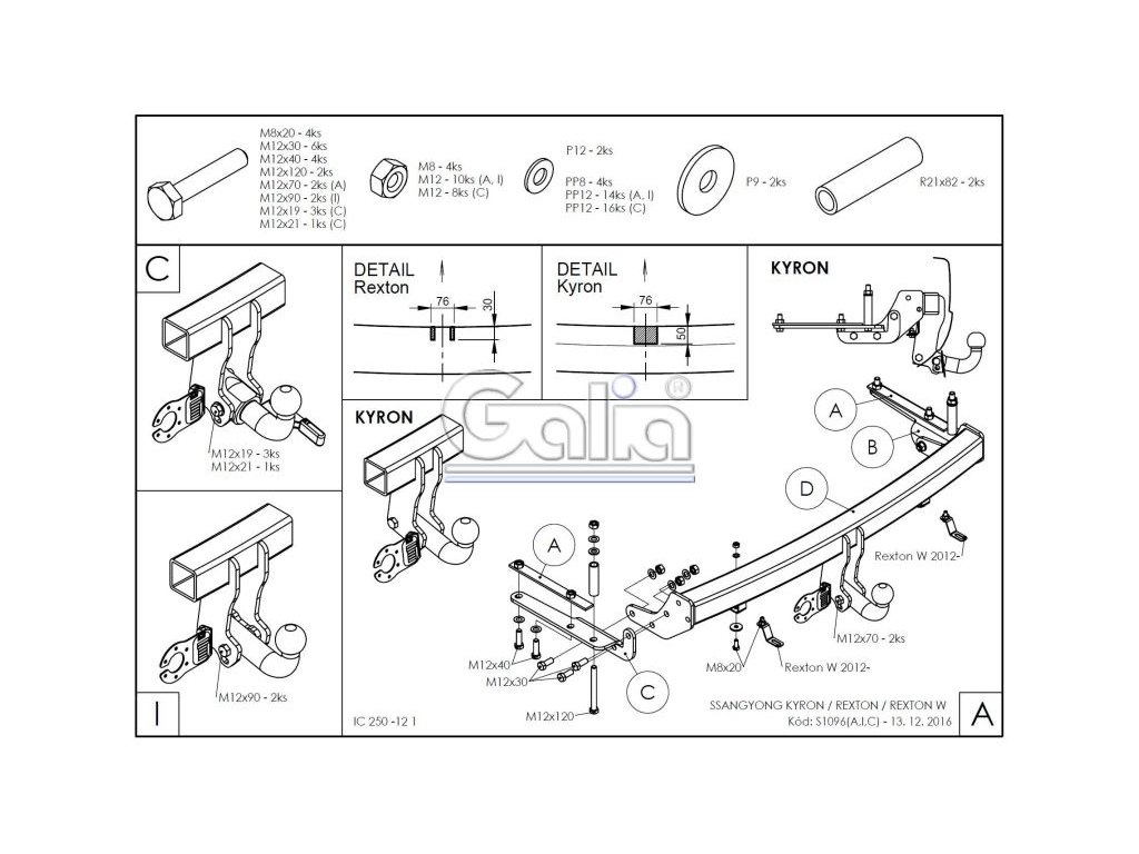 Tažné zařízení SsangYong Rexton / Kyron, pevnéKVALITNÍ TAŽNÉ ZAŘÍZENÍ, KTERÉ NEREZAVÍ, ZA NEJLEPŠÍ CENU Tažné zařízení největšího slovenského výrobce má unikátní povrchovou úpravu zinkováním s 10-ti letou zárukou na ochranu proti korozi. Zinkování vytváří stříbrný povrch, který se po čase vlivem oxidace změní na šedý odstín. Přesnou sériovou výrobou na nejmodernějších strojích je zaručena snadná a rychlá montáž na vozidlo a dobrá cena. Tažné zařízení je homologováno dle předpisu ECE 55R nebo EU94/20. Výrobce: GALIA Slovakia s.r.o., Slovensko