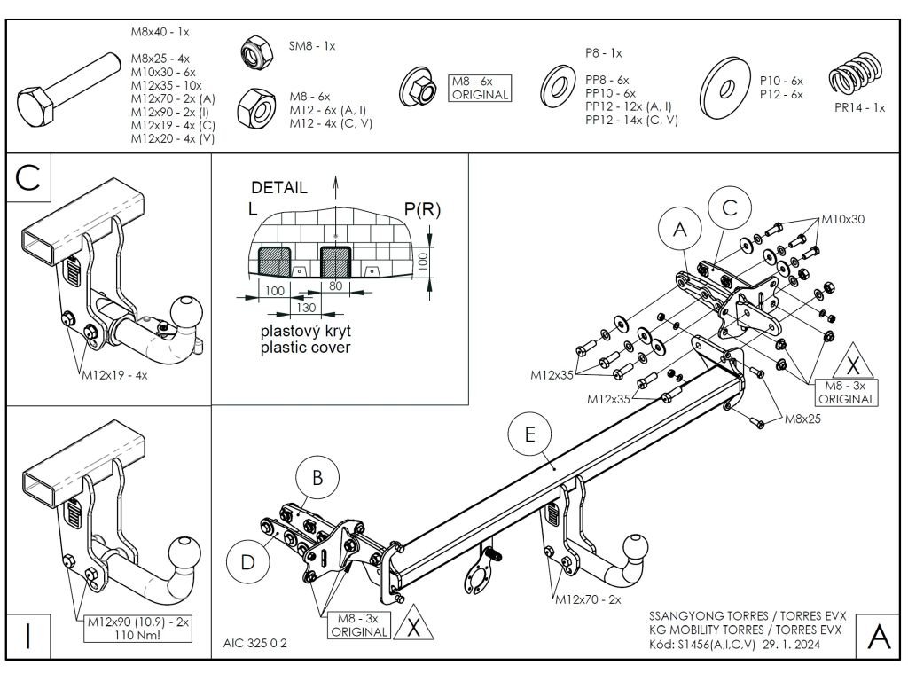 Tažné zařízení SsangYong Torres 22- bajonetUpozornění - k primárnímu používání s nosiči kol doporučujeme volit pevné tažné zařízení. V důsledku dynamického působení svislého zatížení dochází ke snižování životnosti bajonetových systémů.