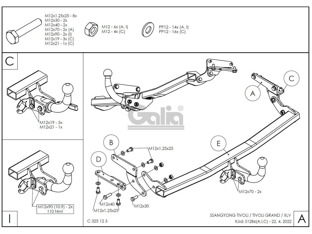 Tažné zařízení SsangYong XLV 2016-2020 , pevné, GaliaPOZOR! kulový čep překrývá mlhové světlo vozu, při provozu bez přívěsu musí být čep z vozidla demontován. K jeho obsluze je nutné mít ve vozidle příslušné montážní klíče a momentový klíč pro předepsané utažení spojů. Pro tento model vozidla doporučujeme zvolit tažné zařízení s beznářaďovým odnímatelným systémem.