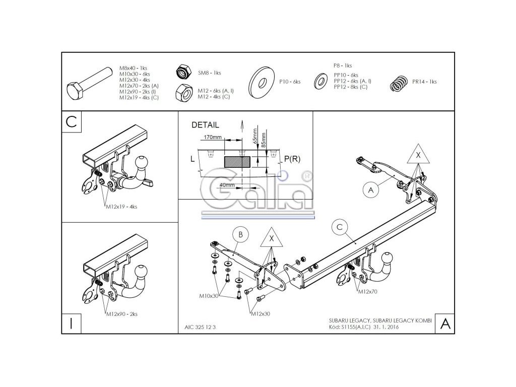 Tažné zařízení Subaru Legacy sedan 2009-2014 , pevný čep 2 šrouby, GaliaKVALITNÍ TAŽNÉ ZAŘÍZENÍ, KTERÉ NEREZAVÍ, ZA NEJLEPŠÍ CENU + Tažné zařízení největšího slovenského výrobce má unikátní povrchovou úpravu zinkováním s 10-ti letou zárukou na ochranu proti korozi. Zinkování vytváří stříbrný povrch, který se po čase vlivem oxidace změní na šedý odstín. Přesnou sériovou výrobou na nejmodernějších strojích je zaručena snadná a rychlá montáž na vozidlo a dobrá cena.