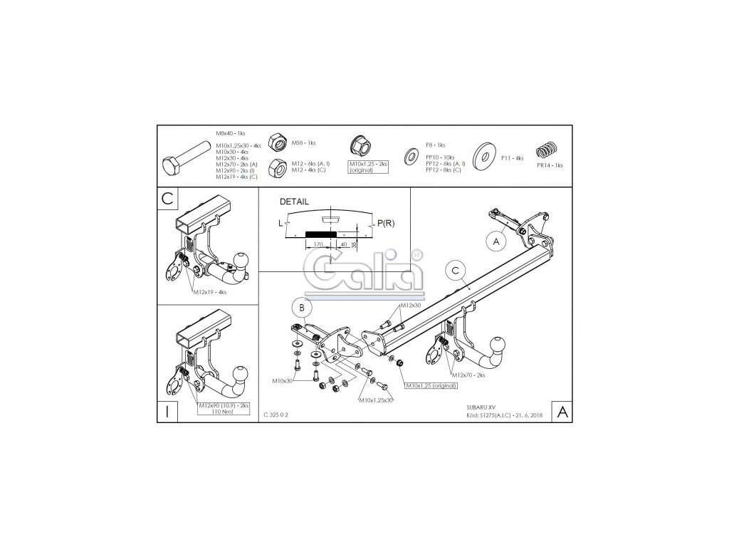 Tažné zařízení Subaru XV 11-, bajonetUpozornění - k primárnímu používání s nosiči kol doporučujeme volit pevné tažné zařízení. V důsledku dynamického působení svislého zatížení dochází ke snižování životnosti bajonetových systémů.