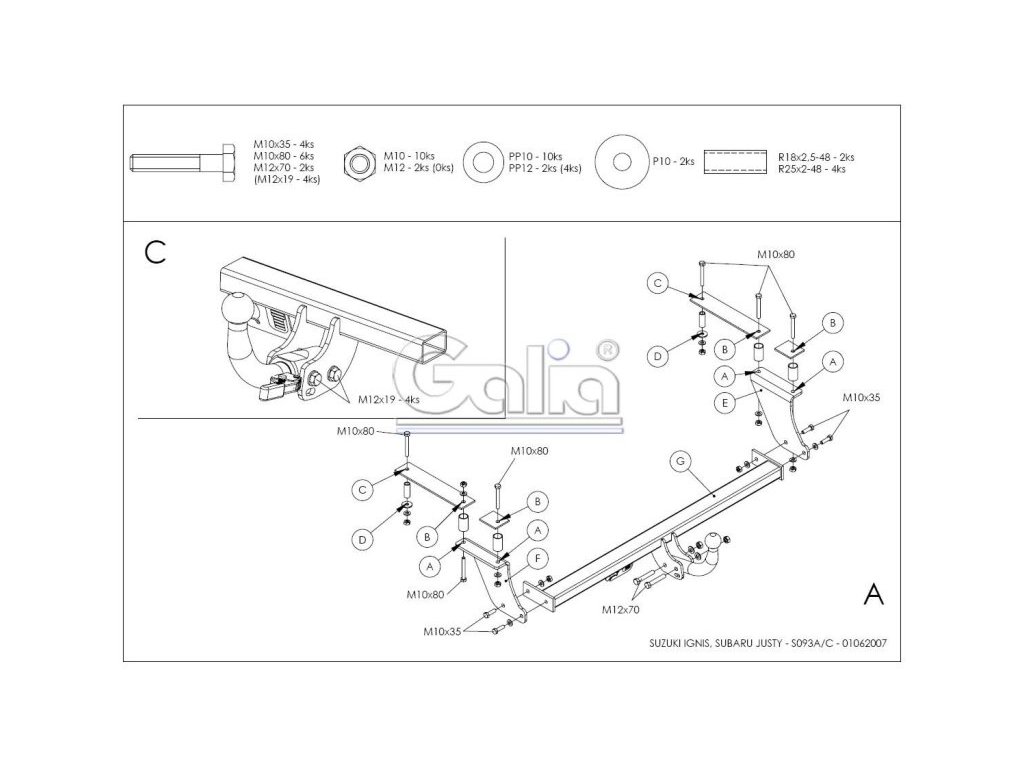 Tažné zařízení Suzuki Ignis 2003-2006 , pevný čep 2 šrouby, Galia