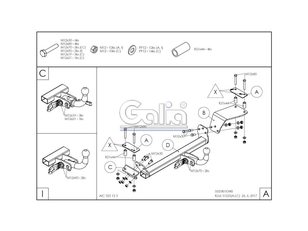 Tažné zařízení Suzuki Ignis 16-, bajonetUpozornění - k primárnímu používání s nosiči kol doporučujeme volit pevné tažné zařízení. V důsledku dynamického působení svislého zatížení dochází ke snižování životnosti bajonetových systémů.