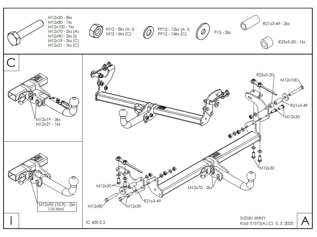 Tažné zařízení Suzuki Jimny - odnímatelnéUpozornění - k primárnímu používání s nosiči kol doporučujeme volit pevné tažné zařízení. V důsledku dynamického působení svislého zatížení dochází ke snižování životnosti bajonetových systémů.