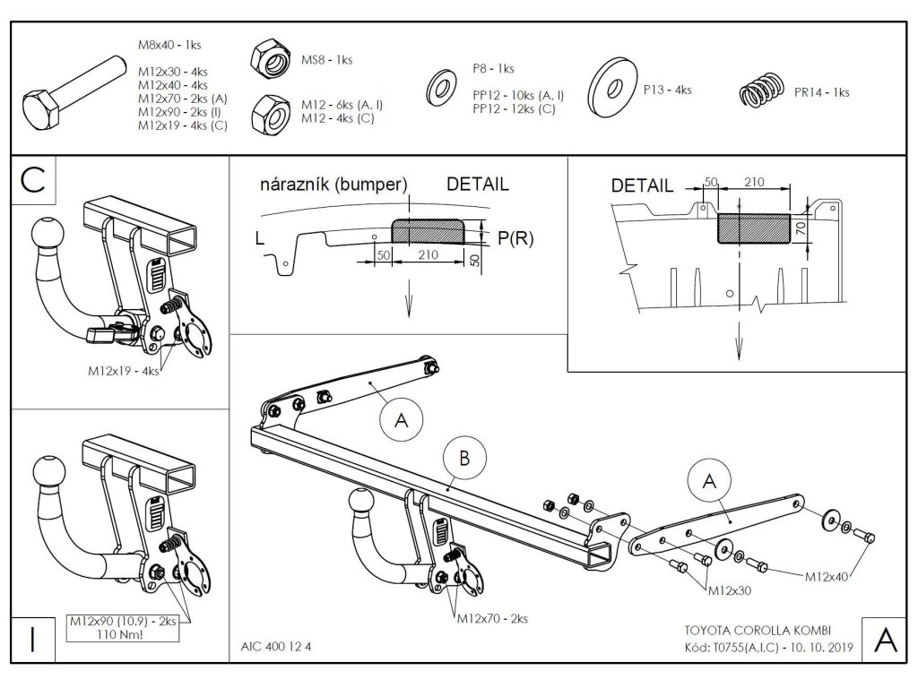 Tažné zařízení Toyota Corolla / Suzuki Swace kombi 19-, vertikalKVALITNÍ TAŽNÉ ZAŘÍZENÍ, KTERÉ NEREZAVÍ, ZA NEJLEPŠÍ CENU
