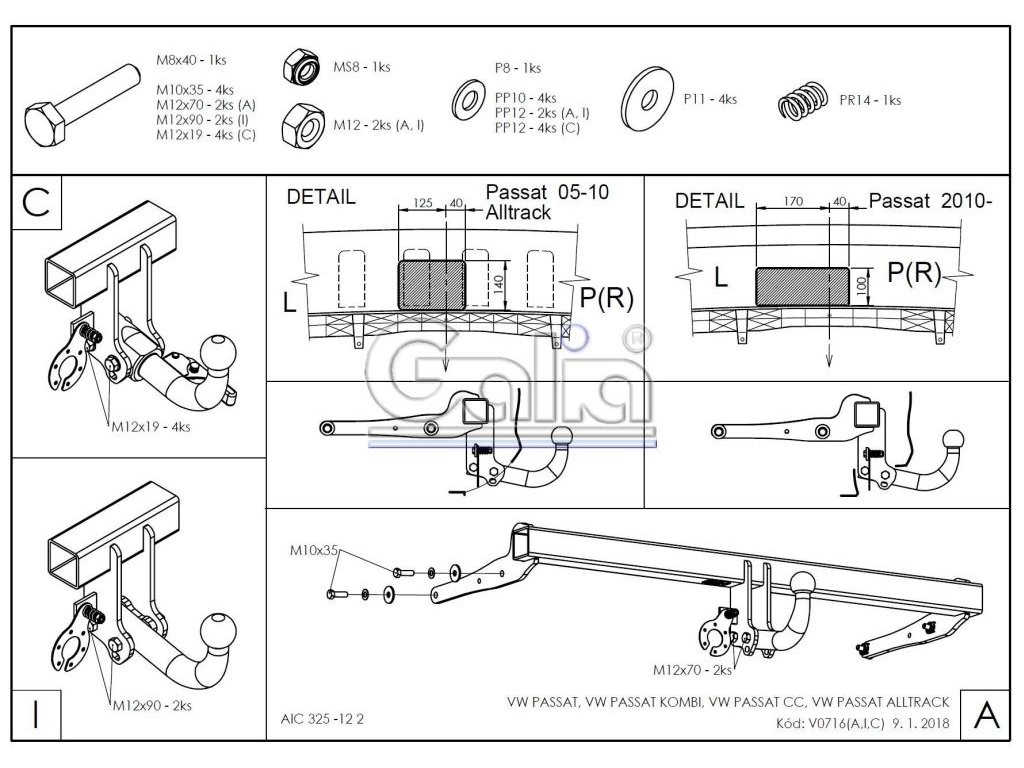 Tažné zařízení Volkswagen Passat Alltrack 2012-2014/11 (B7), bajonet, Galia