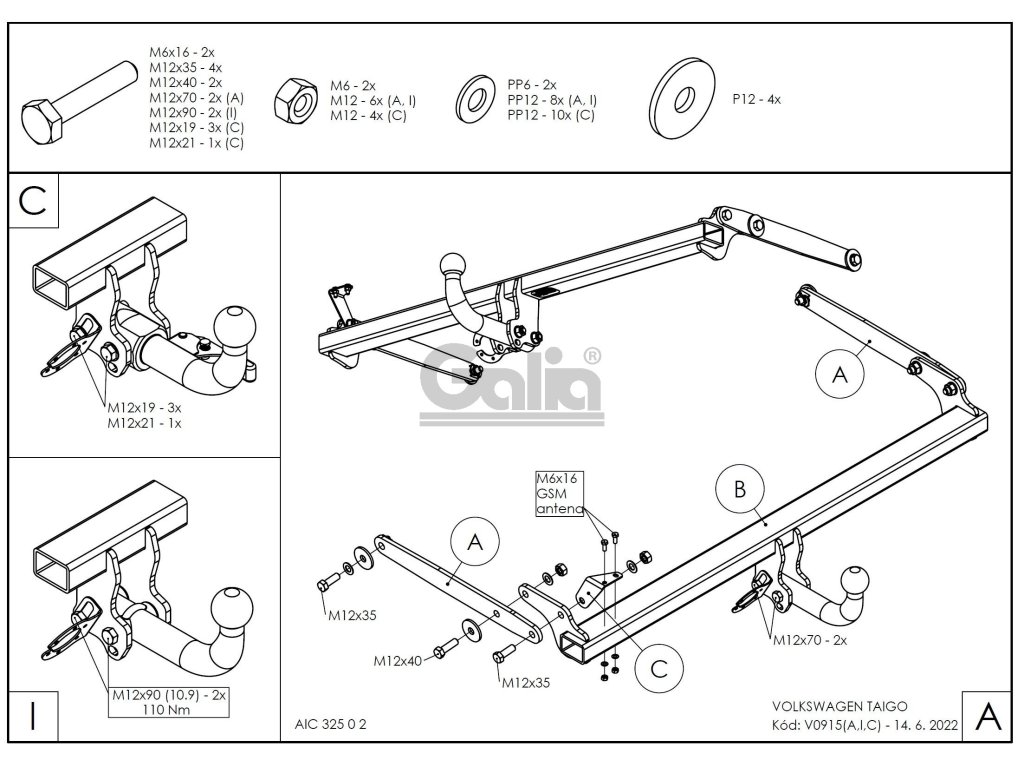 Tažné zařízení Volkswagen Taigo 2021- , pevné, Galia