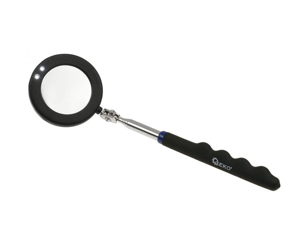 Velmi kvalitně zpracované teleskopické inspeční zrcátko s LED diodami. Otočný kloub umožňuje nastavit zrcadlo v libovolné poloze.