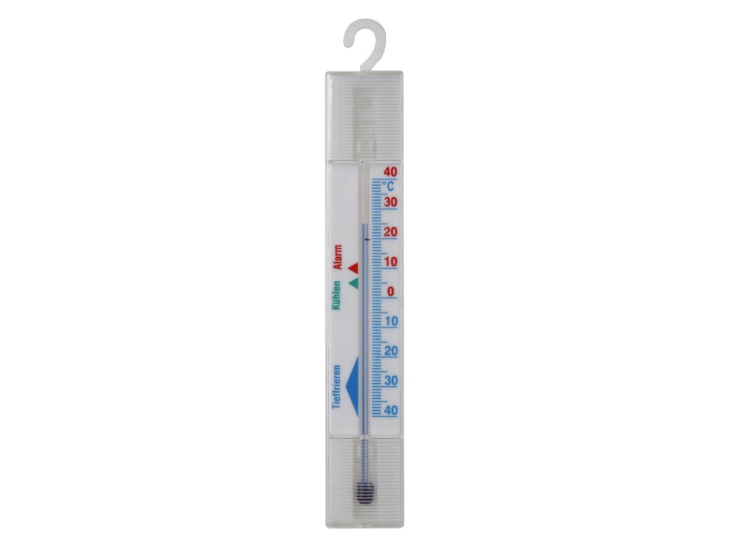 Chladničkový teploměr se závěsným háčkem délky 14 a šířky 2.5 cm (délka se závěsem 15.5 cm).Stupnice měření -40 až +40°C.