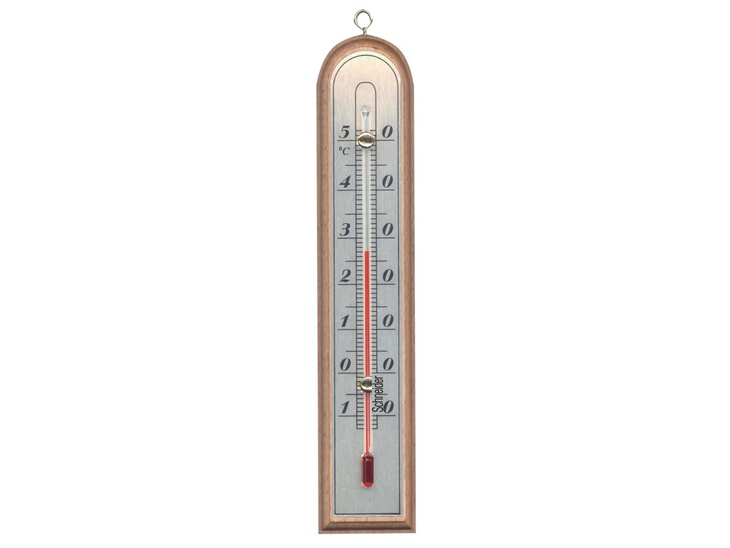 Interiérový dřevěný teploměr.Stupnice měření -10 až +50°C, měření po 1°C.