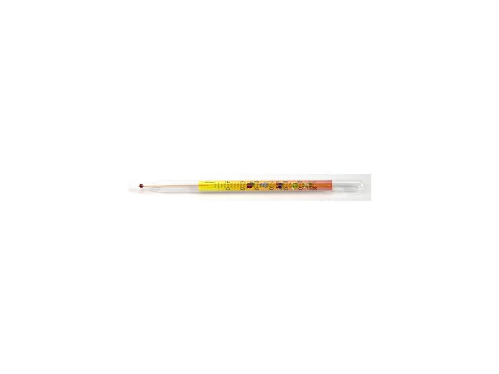 Zavařovací teploměr délky 33 cm.Symboly zavařovacích teplot ovoce a zeleniny.