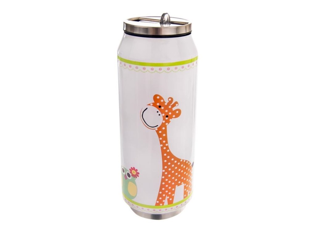 Termoska ve tvaru plechovky s dekorem ŽIRAFA.Udrží 12 hodin teplý a 8 hodin studený nápoj.