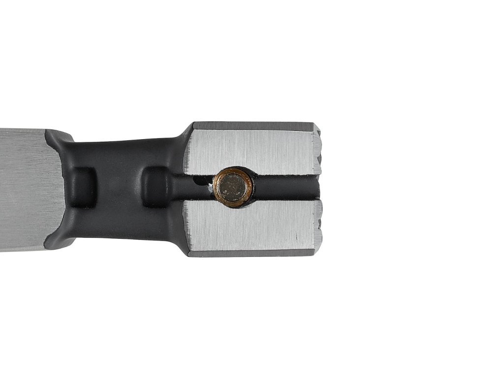 Magnetický držák umožňuje upevnit hřebík na hlavu kladiva a zahájit zatloukání jednou rukou, což výrazně zrychluje práci zejména při montáži na žebříku nebo v nepřístupných místech.