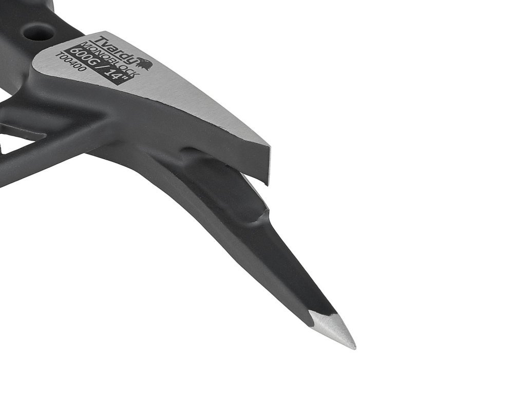 Oboustranná pracovní hlava nabízí maximální funkčnost. Úderová plocha je opatřena zářezy pro lepší úchop hřebíku – zabrání prokluzu a umožní přesné zatloukání jednou rukou. Druhá strana je tvarována jako vytahovač s agresivním profilem pro snadné páčení a odstranění hřebíků, spon i jiných spojovacích prvků.