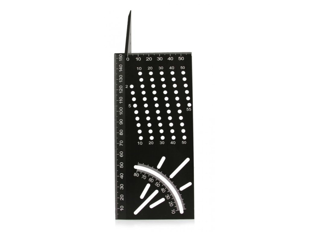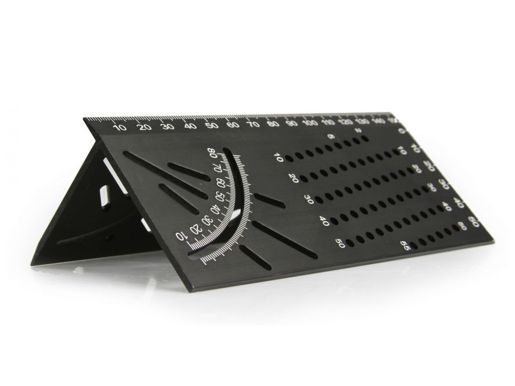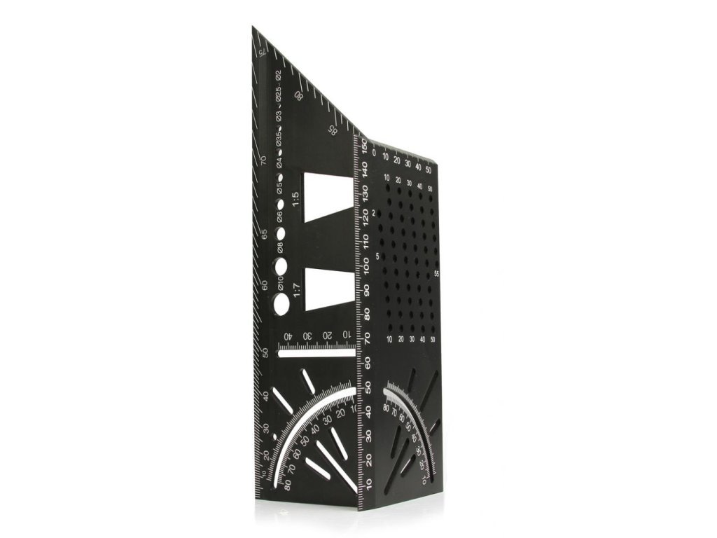 Víceúčelový trojrozměrný japonský hliníkový úhelník ideální pro měření a určování úhlů na všech površích. Umožňuje pracovat s 3D materiály, jako jsou dřevěné trámy, trubky apod.