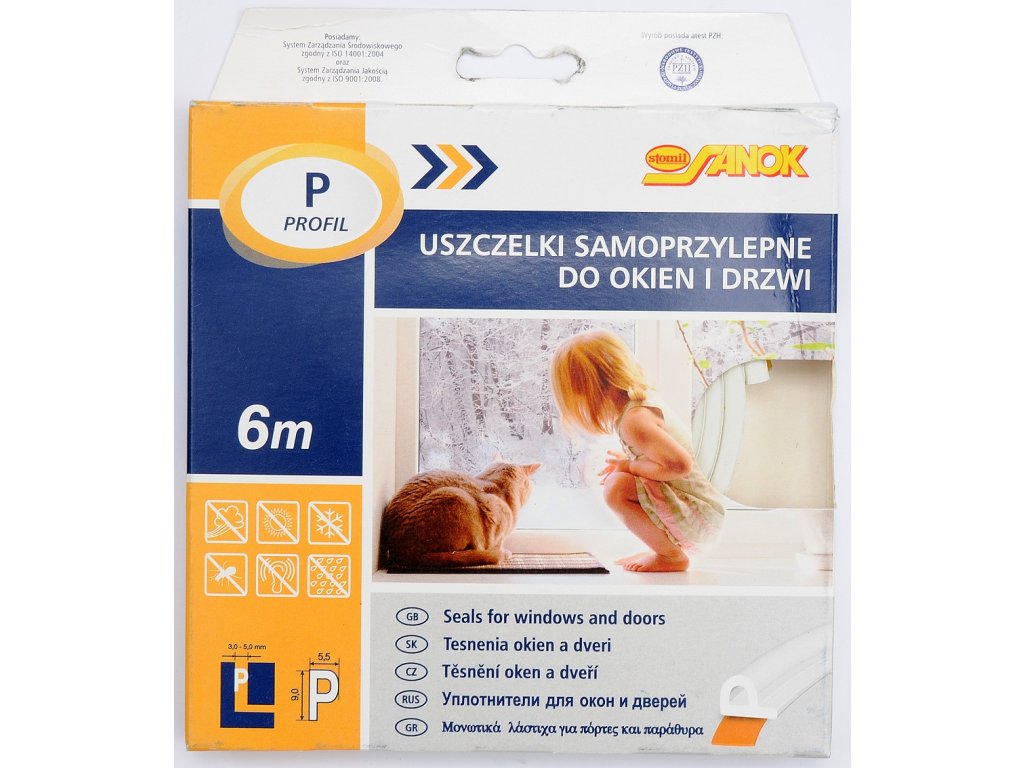 Těsnění do oken a dveří samolepící 9x5,5mm TYP P bílé 6M