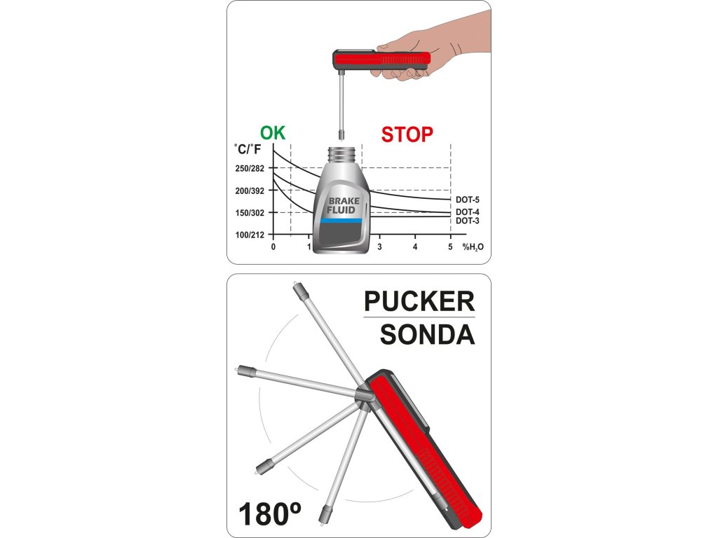 Zařízení pro rychlou kontrolu kvality brzdové kapaliny. Vhodné pro motocykly, osobní a nákladní automobily. Ideální pro profesionální použití v dílnách, i garážích.