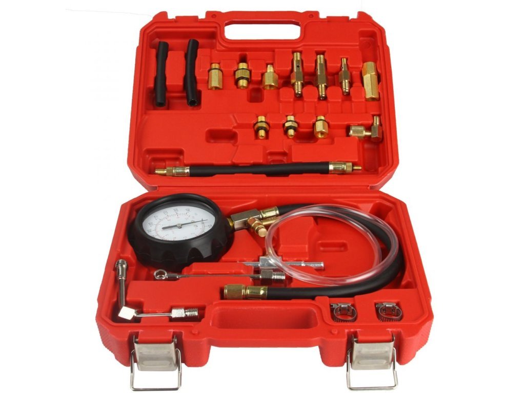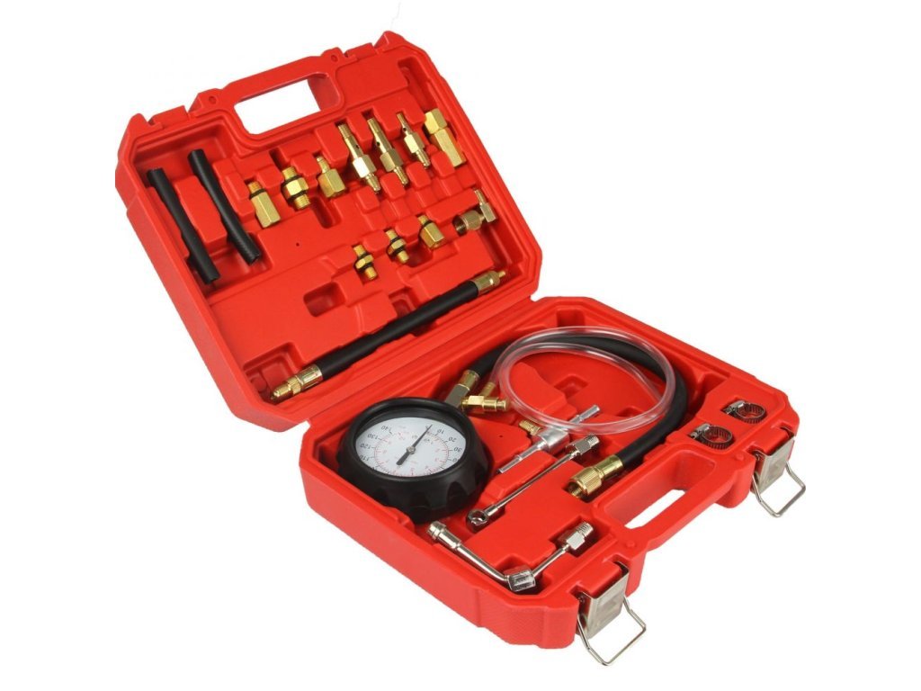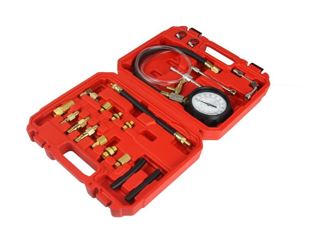 - Univerzální a multifunkční sada pro měření tlaku paliva nebo oleje.