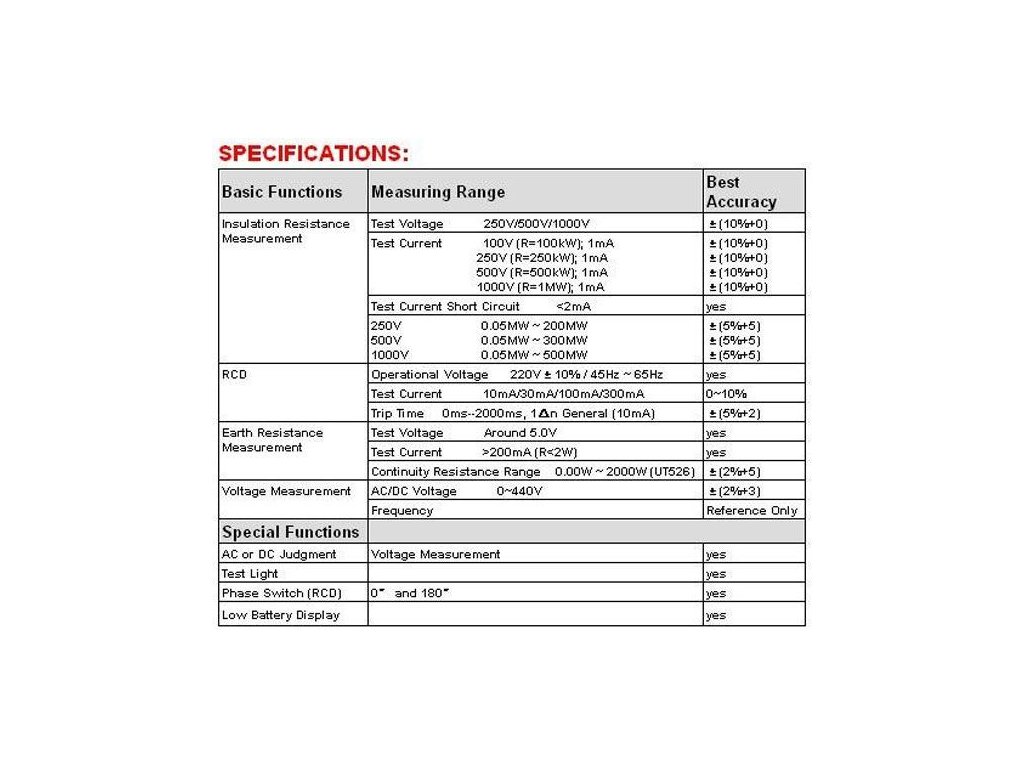 Tester multifunkční UT526 UNI-T měření izolačního odporu, měření přechodového odporu, testování proudových chráničů, vyhovuje ČSN EN61557, kalibrační protokol R297A se objednává samostatněDoplňkové parametry