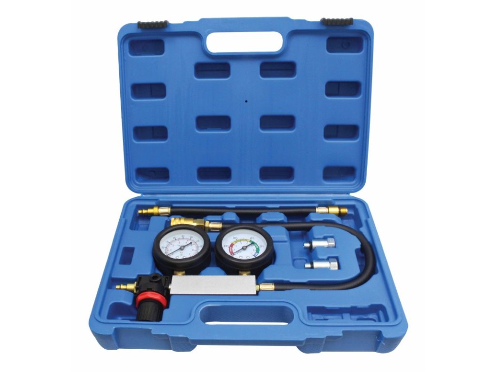 Specializovaná sada určená k testování a kontrole opotřebení válců v benzinovém či naftovém motoru automobilu – SATRASoupravu pro tlakovou zkoušku válců používají v odborných dílnách mechanici k diagnostice stavu motoru měřením množství unikajícího vzduchu.