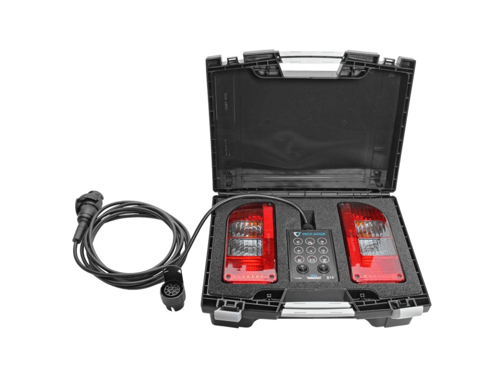 Tester zapojení EP 7pin+13pin/12V pro CAN-BUS, Erich JaegerPomocí tohoto testeru můžete simulovat světla přívěsu. Test můžete provádět z místa řidiče pomocí 5 metrů dlouhého propojovacího kabelu.