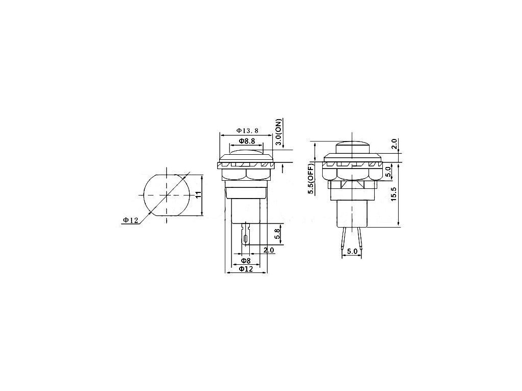 Tlačítko OFF-(ON) R13-502 230V/1A do otvoru 12mm červenéDoplňkové parametry