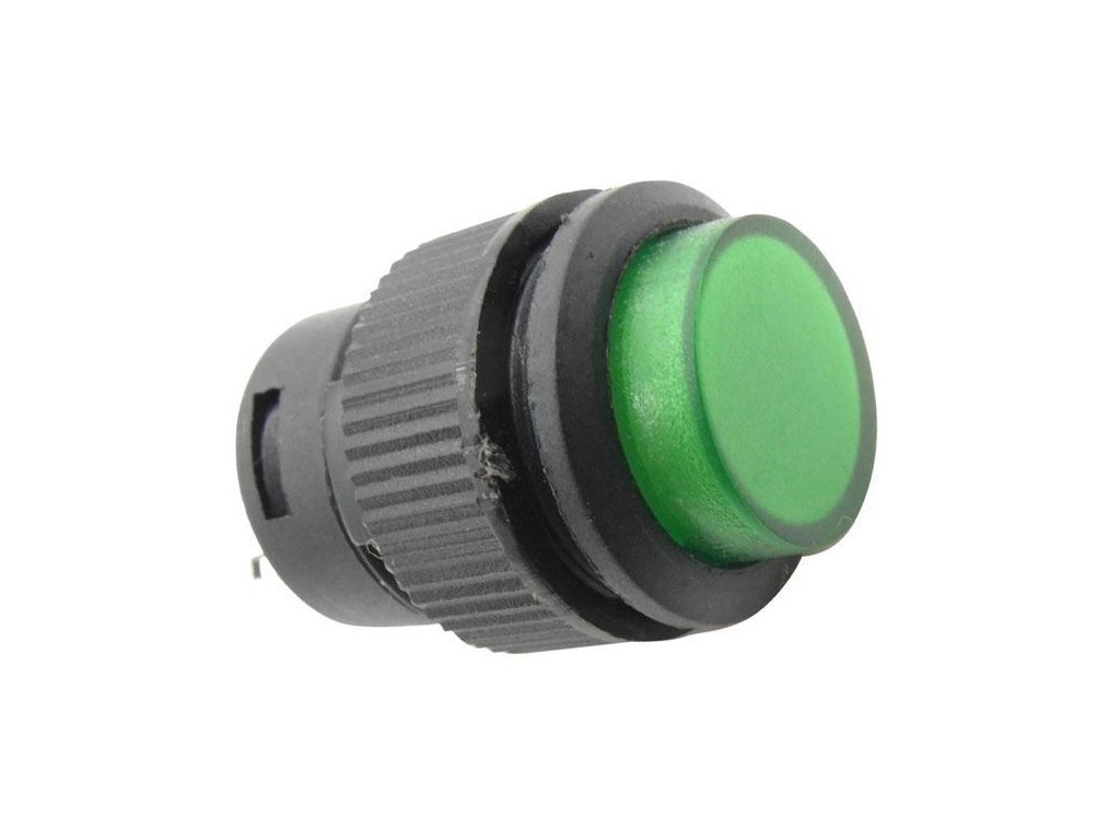 Tlačítko R16-503BD 1pól. OFF-(ON) 250V/3A zelené prosvětlené