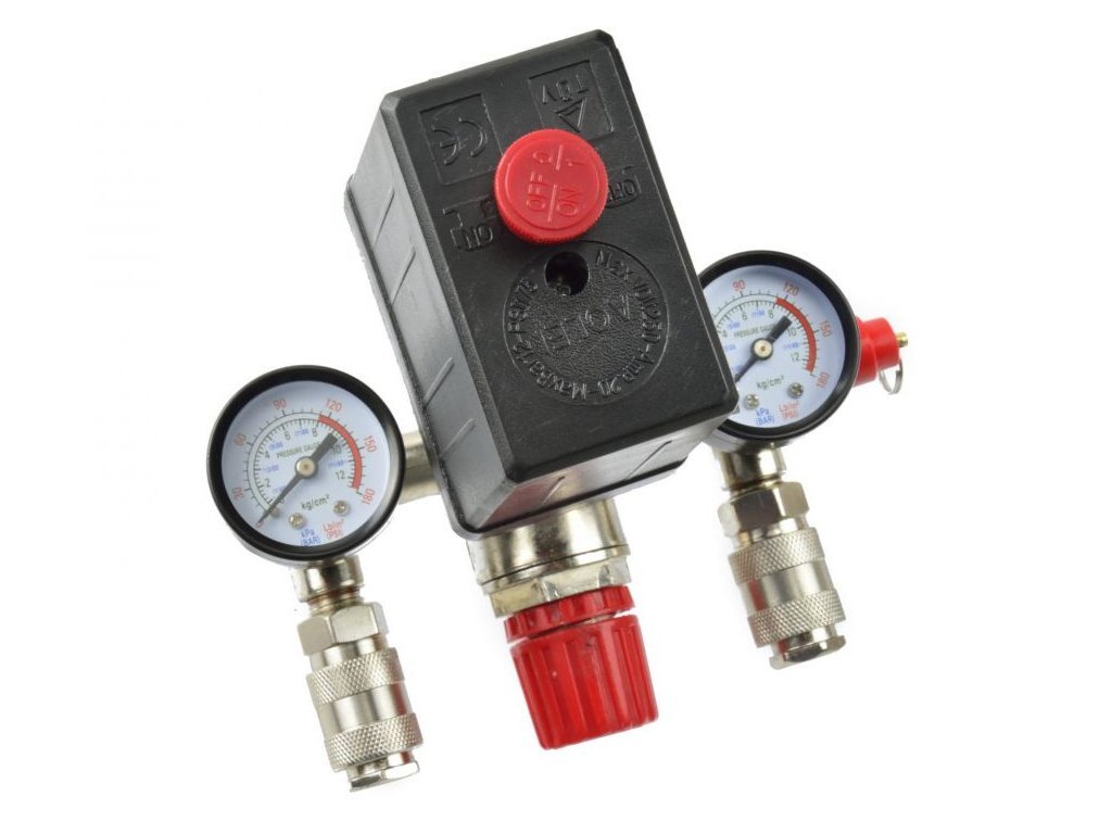 Tlakový spínací ventil + ukazatele tlaku pro vzduchový kompresor, GEKO