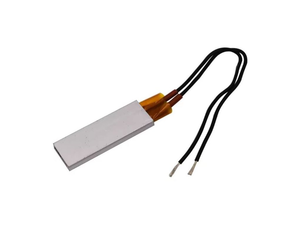Topné těleso PTC s termostatem, 24V/80W, 110° topné těleso 60x21x5mm, Al obal, pro montáž na kovovou podložku, vybaven termostatem 110°C, Délka přívodů 14cmDoplňkové parametry
