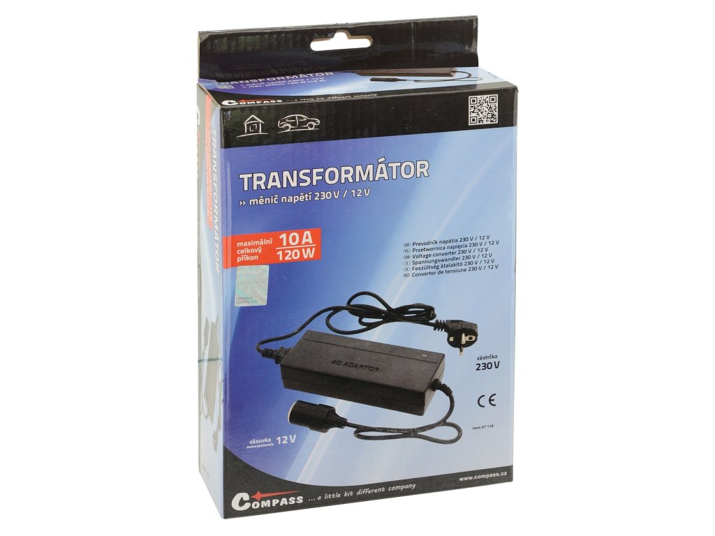 Tento vysoce výkonný 10 A měnič (transformátor s usměrňovačem) je určený pro univerzální použití, kdy je potřeba připojit zařízení o výkonu až 120W s napájením pomocí zástrčky autozapalovače 12V= k síti s napětím 230V.