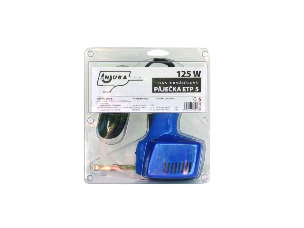 Transformátorová páječka NUBA ETP 5, uchycení hrotu speciálním upínačem, modrá barva.