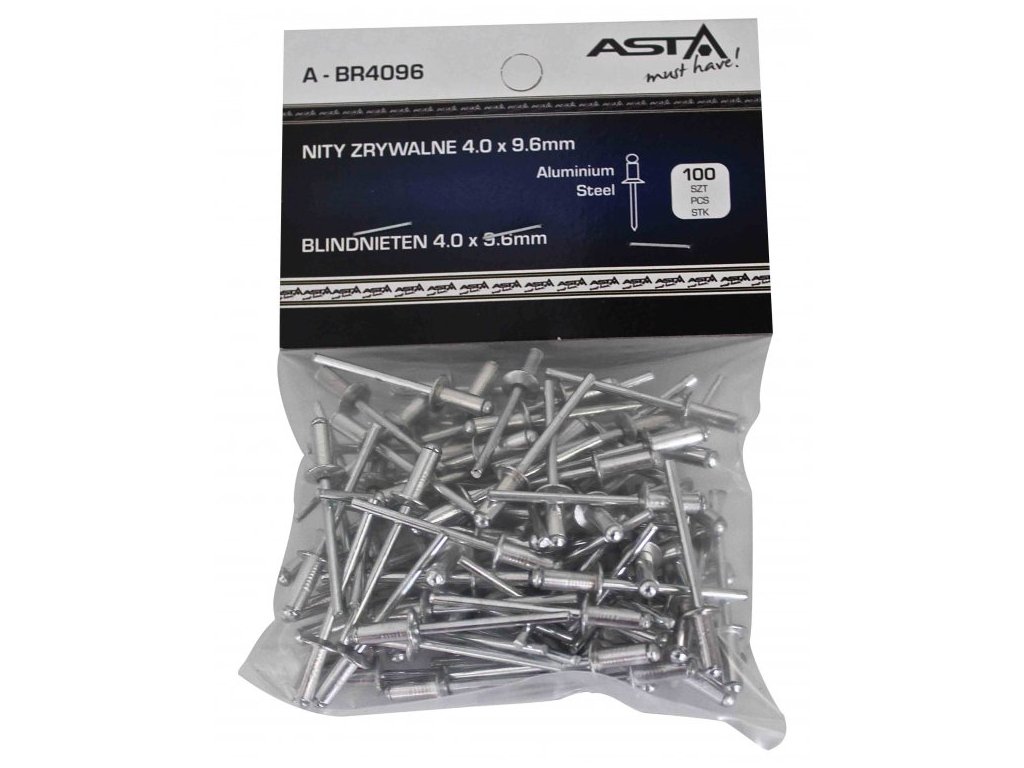 Trhací nýty hliník-ocel, různé rozměry, s plochou hlavou, balení 100 ks - ASTA