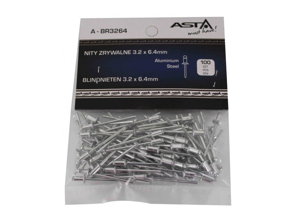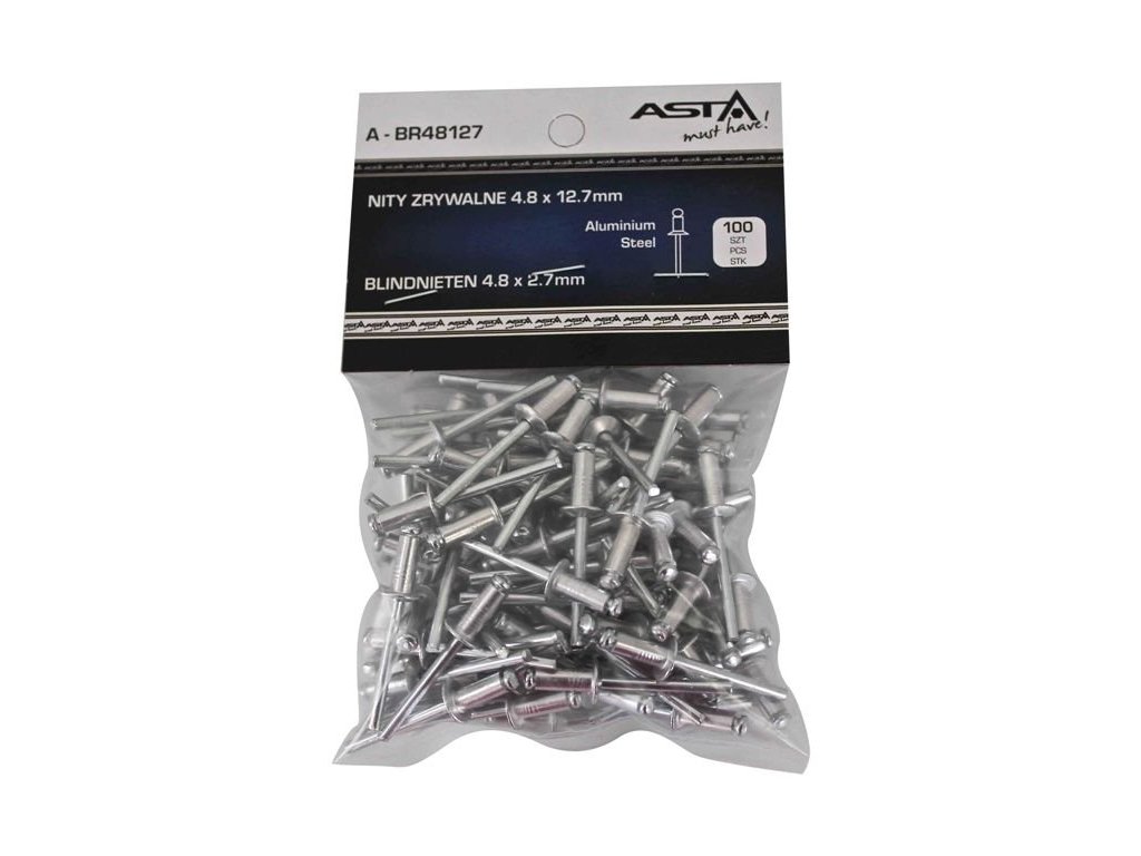 Trhací nýty hliník-ocel, různé rozměry, s plochou hlavou, balení 100 ks - ASTA