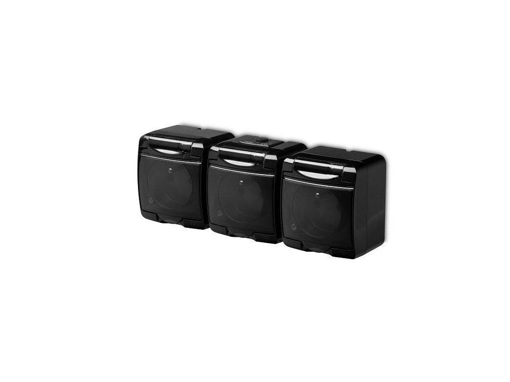 Trojzásuvka 250V/16A IP54, černá, KarlikManuál k produktu je ke stažení zde