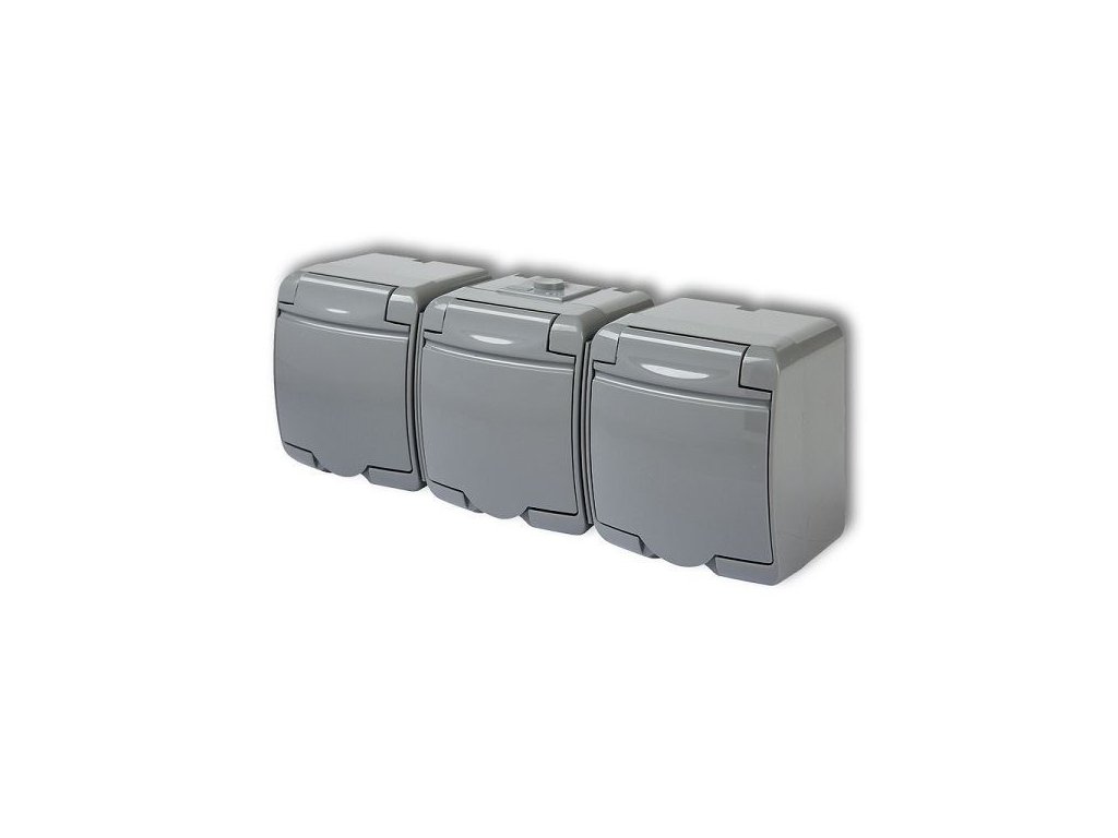 Trojzásuvka 250V/16A IP54, šedá, Karlik