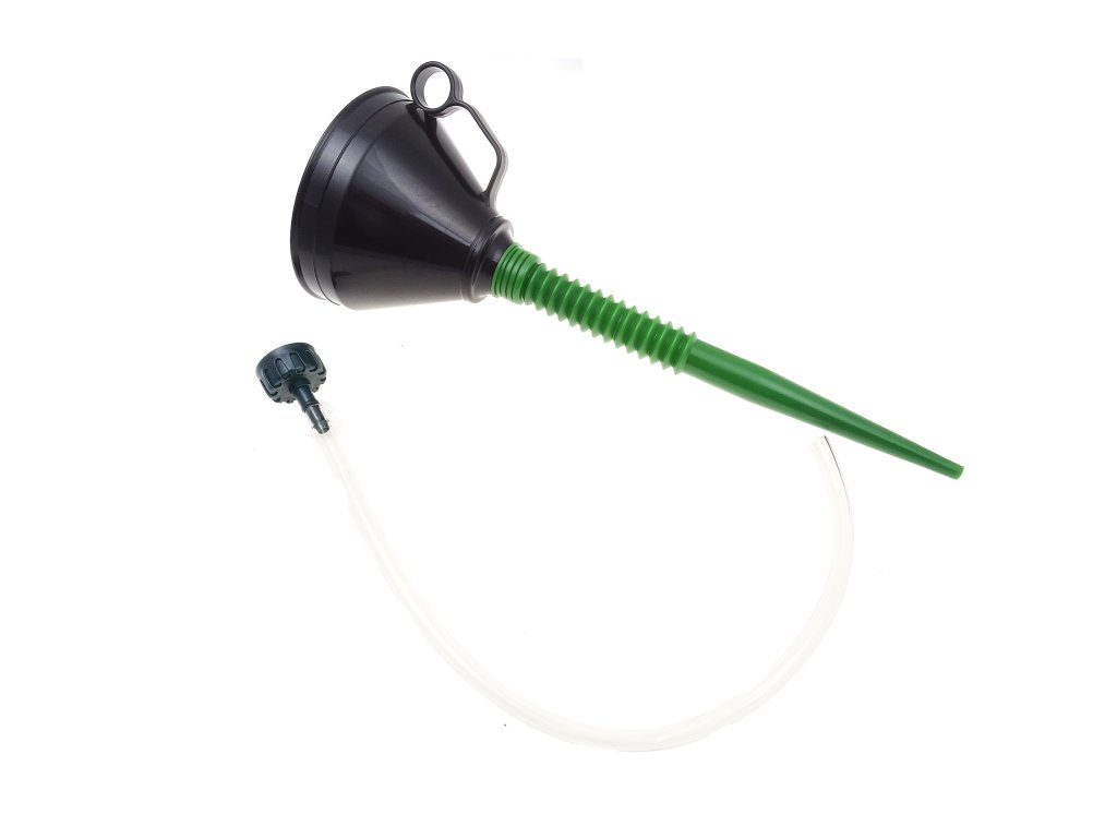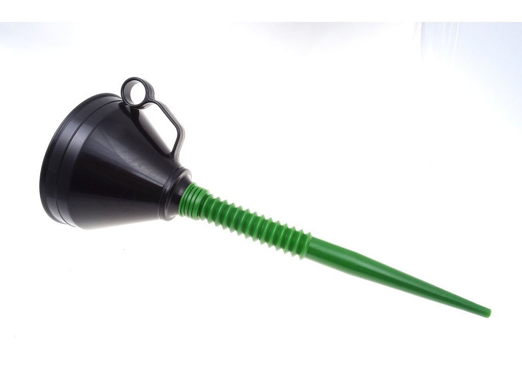 Ohebná nálevka (tzv. husí krk) celkové délky 350 mm pro pohodlné plnění.