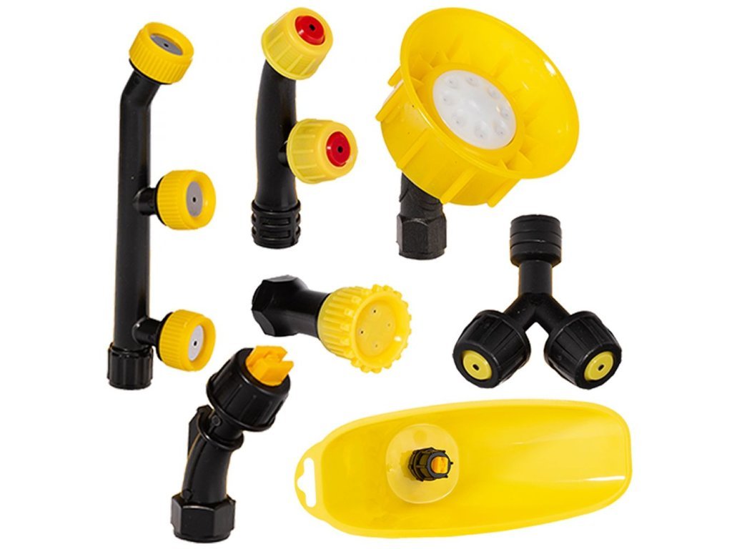 Trysky v sadě 7 ks vhodných pro většinu ručních, zádových, aku a benzínových postřikovačů. Účinnost v závislosti na trysce od 1,5 do 3 l/min.
