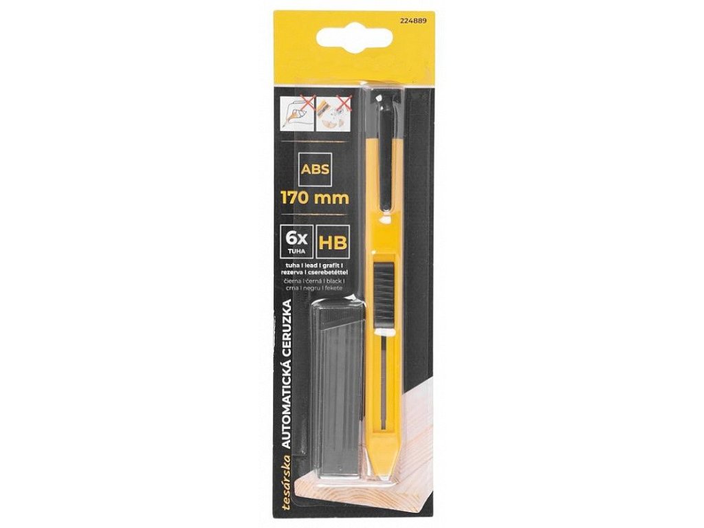 Tesařská automatická tužka se sponou je primárně určena pro značení dřevěných povrchů s černou tuhou tvrdosti HB.