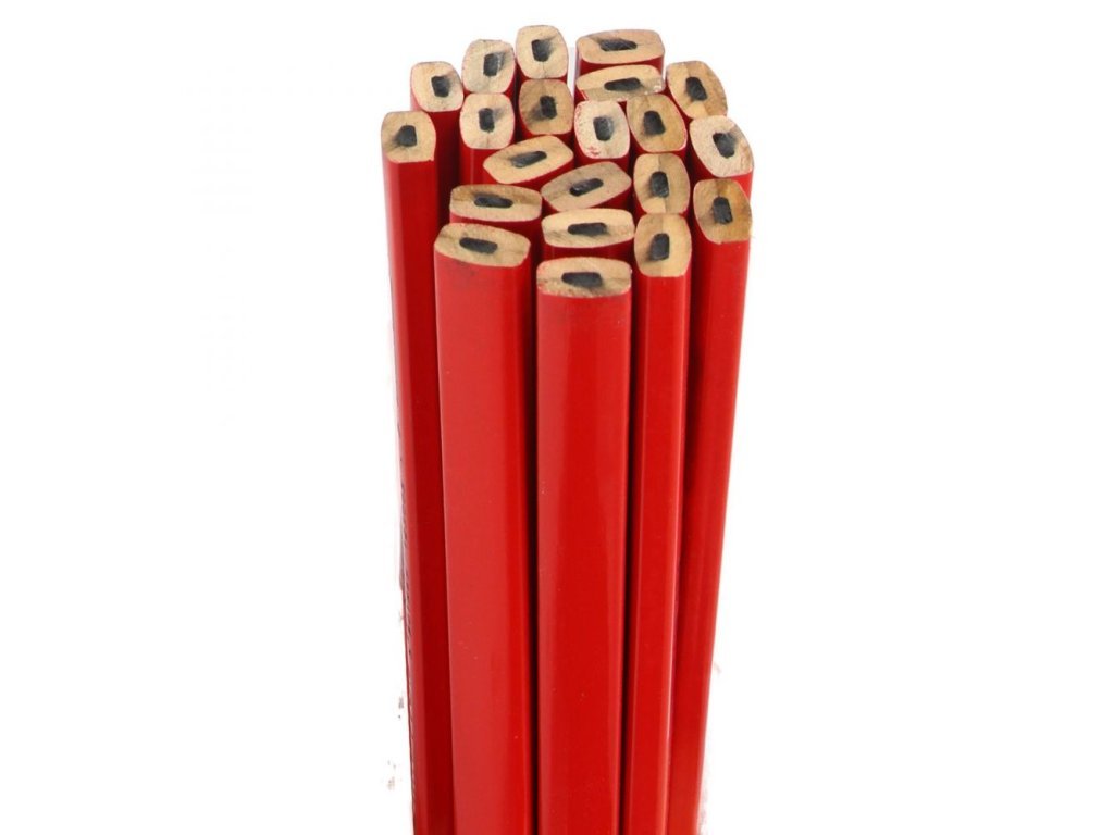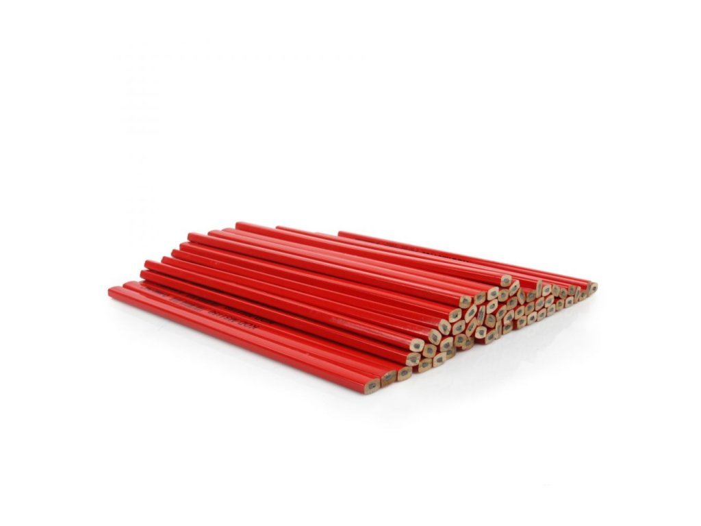 Stavební tužky, vyrobené ze dřeva. Psaní černou tuhou. Díky jasně červené barvě se snadno hledají a těžko se ztrácejí.