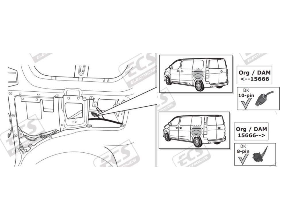 Typová elektropřípojka Fiat Ulysse 2022- , 7pin, ECS Typová 7-mi pinová elektropřípojka. Použitelné pro vozy bez funkce LFS (kontrola poruch světel), s originálními konektory, připraveno pro nastavení funkce odpojení PDC (parkovací senzory). Vypínání mlhového světla. Výrobce: ECS Electronics, Nizozemí.Doplňkové parametry