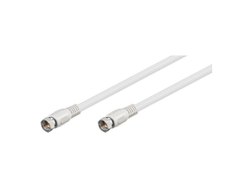 Satelitní anténní kabel F/Male to F/Male, rovné konektory<BR/><BR/>- Konektory: F samec - F samec<BR/>- Konektory jsou poniklované a zastříknuté pro maxmální mechanickou odolnost<BR/>- Kabel: koaxialní kabel<BR/>- Vnitřní vodič: CCS<BR/>- Počet stínění: 2<BR/>- První vrstva stínění: hliníková folie<BR/>- Druhá vrstva stínění: punčoška upletená ze 112 vodičů<BR/>- Vnější průměr: 5.3 mm<BR/>- Kvalita stínění, útlum vůči vnějšímurušení: 80 dB<BR/>- Impedance koaxiálního kabelu: 75 Ohm<BR/>- Barva: bílá<BR/>- Délka kabelu 7,5mDoplňkové parametry
