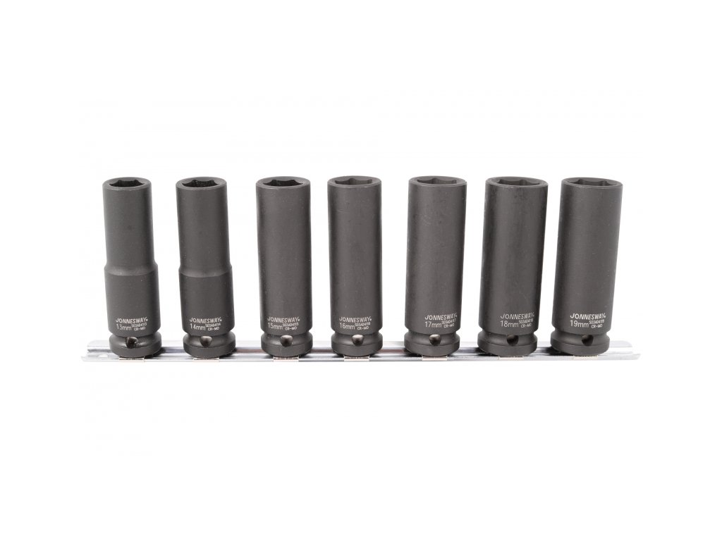 Úderové hlavice 1/2" vel. 13-19 mm, nástrčné prodloužené, Cr-Mo - JONNESWAY S03AD4107S
