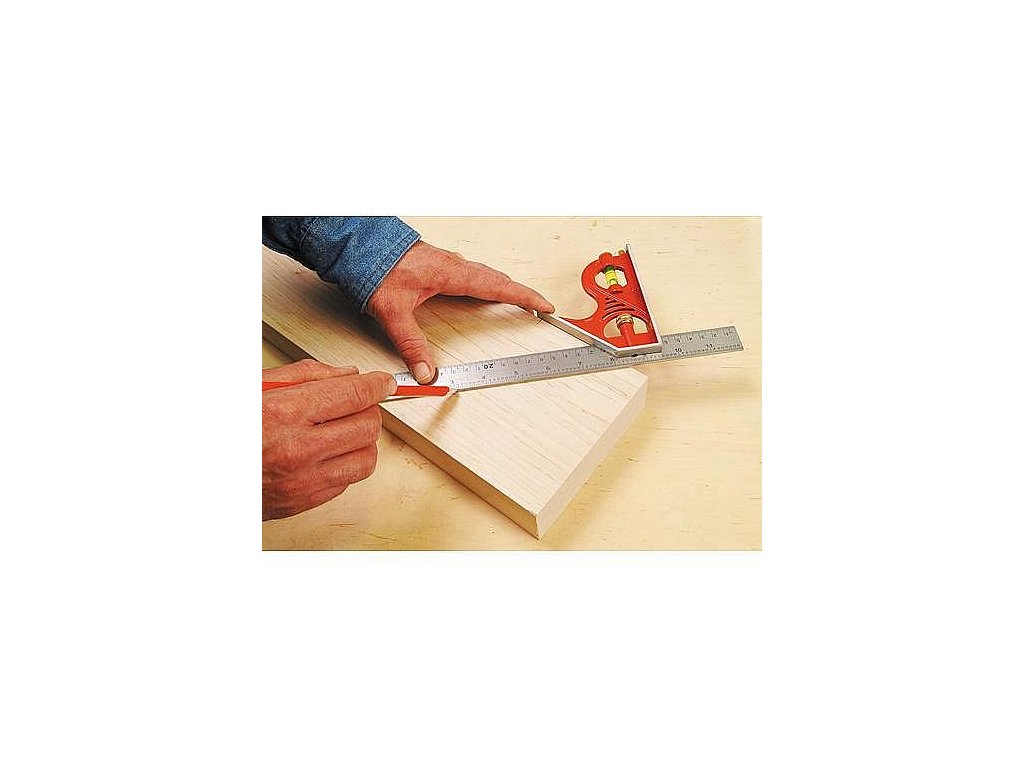 Vybaven je pravítkem z nerezové oceli a také libelou.