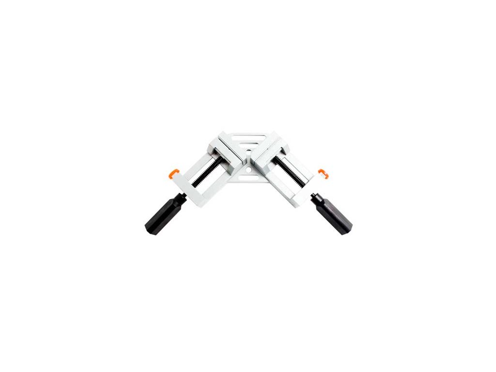 Svěrák s rychloposuvem (tzv. rychloaretační), s upnutím do pravého úhlu (úhlový upínák 90 °), šířka upnutí 7,5 cm – MAGG MSV0643Vhodné např. pro přesné vyvrtání otvorů v k sobě patřících prvcích, vedení pily při řezání pokosem apod. Čelist je možné posouvat po stisknutí pojistky, k jemnému dotažení lze využít vřeteno.