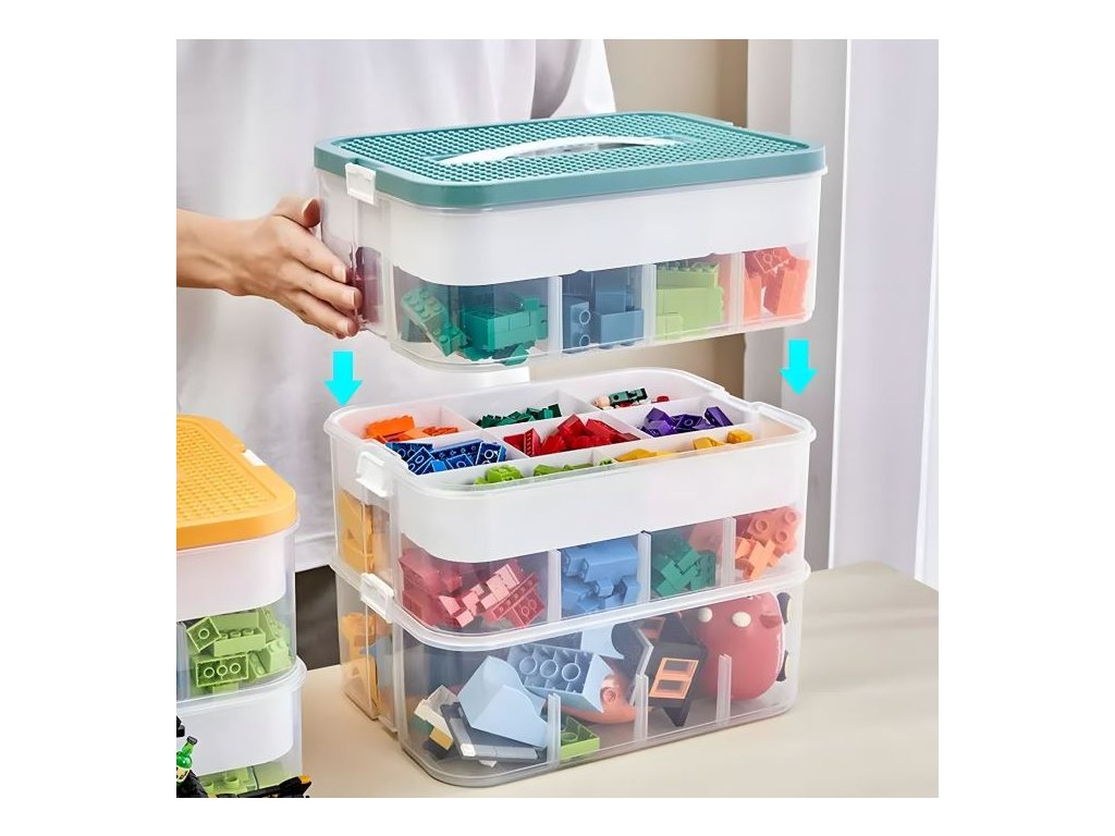 Tento organizér je ideální do dětského pokoje, usnadňuje udržování pořádku a rychlé nalezení potřebných kusů. Jeho modulární design je ideální jak pro hraní v interiéru, tak pro přepravu kostek venku.