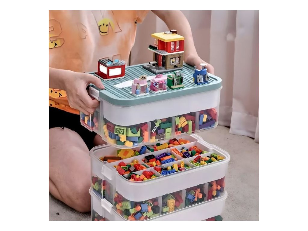 Tento organizérje ideální do dětského pokoje, usnadňuje udržování pořádku a rychlé nalezení potřebných kusů. Jeho modulární design je ideální jak pro hraní v interiéru, tak pro přepravu kostek venku.
