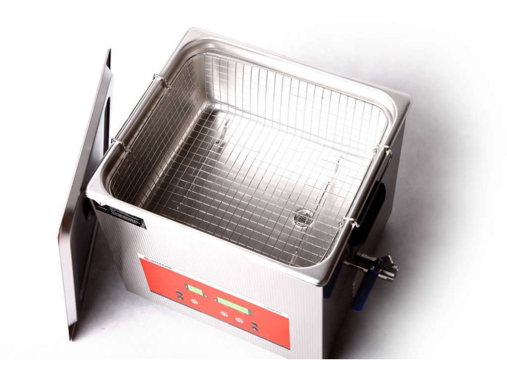 Celonerezová kompaktní čistička řady LABORATORY DIGITAL - digitální displej se zobrazením nastavených hodnot ohřevu a času, objem 13L. VHODNÉ I PRO ČIŠTĚNÍ CELOOBLIČEJOVÝCH MASEK.
